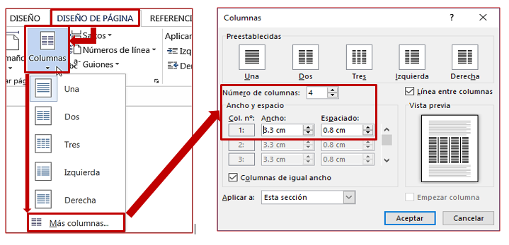 - Seleccione menú Diseño > haga clic en la opción Columnas.
